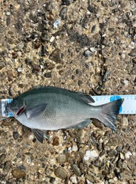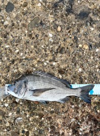 案の定、時折雨に降られながらも、本命の40cmオーバーのチヌ、30cmオーバーのグレ、少し小さいけど真鯛も釣れて、