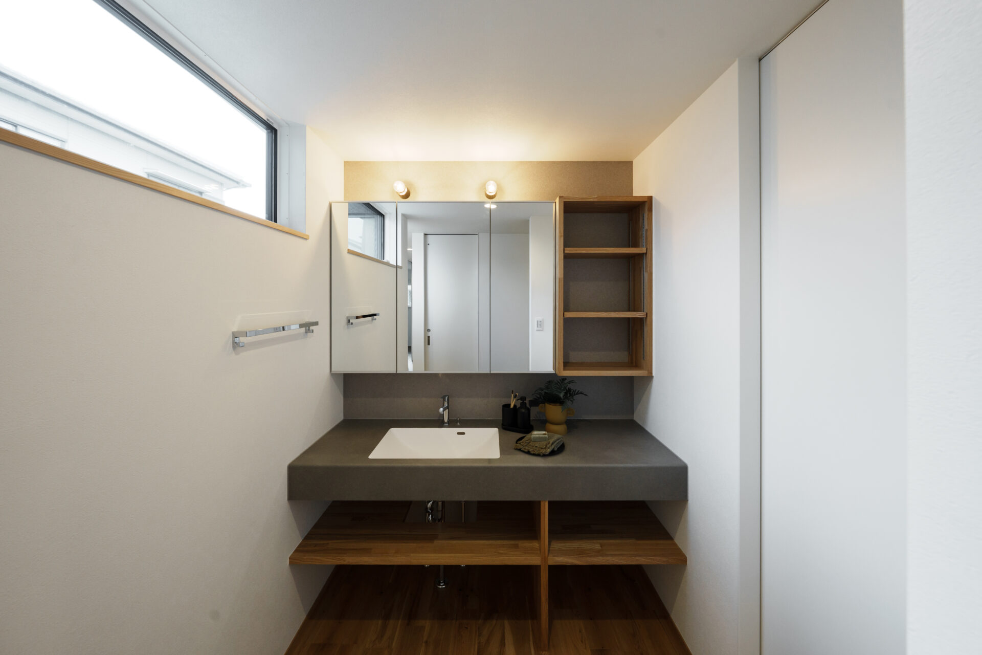 無駄のないラインで構成されたシンプルな造作洗面。